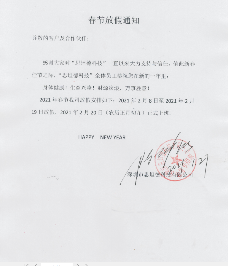 2020年思坦德元旦放假通知